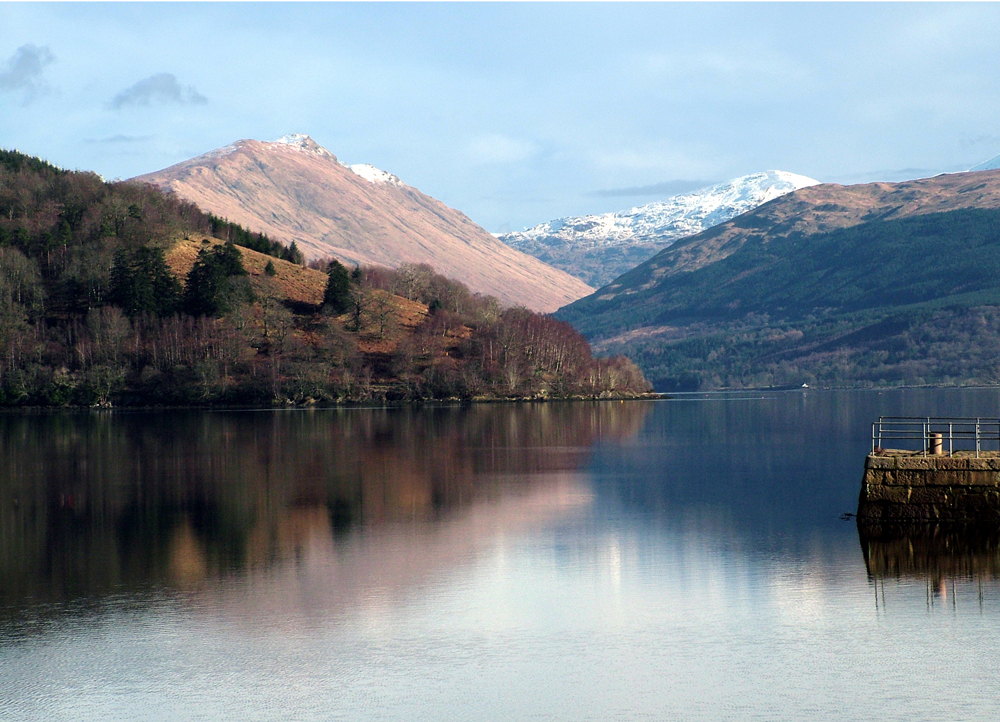 Loch Shira from Inveraray, the end of Inveraray pier is just visible on the right hand side.