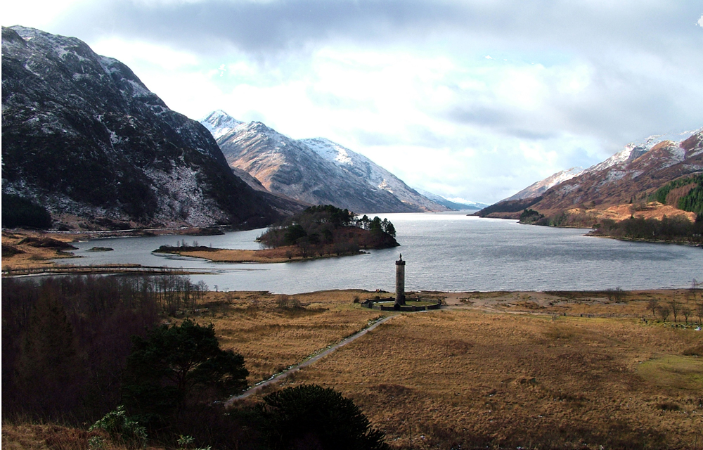 monument to Bonnie Prince Charlie at the head of Loch Shiel.